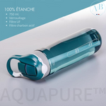 La gourde AQUAPURE™ est dotée d'un filtre breveté spécialement conçu pour elle. Ce filtre permet d'éliminer les contaminants, ainsi que les goûts et odeurs indésirables de l'eau. Facilement utilisable partout, cette gourde est parfaite pour les voyages, randonnées, campings, activités sportives, au travail et lors de vos déplacements quotidiens, allégeant ainsi votre sac.