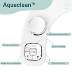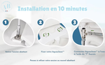 Aquaclean™ se connecte facilement à l’arrivée d’eau de votre chasse d’eau (eau propre donc) et viens se fixer entre votre abattant et votre cuvette.